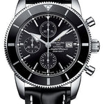 46.00 mm stainless steel case, 16.35 mm thick, screw-locked crown with two gaskets, unidirectional ratcheted rotating bezel, cambered sapphire crystal with glareproof treatment on both sides, volcano black dial, Breitling 13 selfwinding movement, approximately 48 hrs of power reserve, black croco strap, folding buckle. Water resistant to 200 m (660 ft).