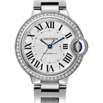33mm steel case, 10mm thick, fluted crown with a synthetic cabochon-shaped spinel, steel bezel with 50 brilliant-cut diamonds totalling 0.63 carats, mineral crystal, silvered dial with sunray effect, automatic movement, steel bracelet with wrist size 175mm. Water resistant to 30 meters.