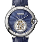39mm 18K white gold case, 11.4mm thick, sapphire back, fluted crown in 18K white gold crown set with a blue sapphire cabochon, 18K white gold bezel, sapphire crystal, blue dial, caliber 9452 manual-winding movement with sword-shaped hands in steel, approximately 50 hours of power reserve, dark blue alligator skin strap, double adjustable folding buckle. Water resistant to 3 bar.
