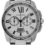 42 mm by 12.6 mm thick stainless steel case, heptagonal crown set with a sapphire, stainless steel bezel with rail track, sapphire crystal, silver dial with partly snailed opaline, silver finish chamfers and luminescent sword shaped black oxidized steel hands, caliber 1904-CH MC automatic movement with chronograph and calendar aperture at 6 o'clock, stainless steel bracelet, stainless steel buckle security clasp. Water resistant to 30 meters.