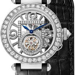 41 mm rhodiumized 18K white gold case, fluted crown, skeleton dial, caliber 9466 MC manual movement, approximately 50 hours of power reserve, 2 dark gray and black alligator-skin strap, movement and buckle. Water resistant to 3 bar (approx 30 meters/100 feet).