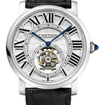 40 mm by 10.6 mm thick 18K white gold case, sapphire back, beaded crown set with sapphire cabochon, sapphire crystal, white dial with silvered open-work grid and Roman numerals with blued hands, caliber 9452 MC manual movement with flying tourbillon complication, seconds indicated by the C-shaped tourbillon carriage, black alligator strap with 18K white gold buckle, buckle double deployant. Water resistant to 30 meters.
