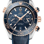 Omega Planet Ocean 600 M Omega Co-axial Master Chronometer Chronograph Watch - 45.5 mm Sedna Gold And Steel Case - Unidirectional Blue Ceramic Bezel - Blue Ceramic Dial - Blue Leather Strap - 215.23.46.51.03.001