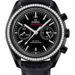 Omega Speedmaster Moonwatch Omega Co-Axial Chronograph Dark Side of the Moon Watch - 44.25 mm Black Ceramic Case - Diamond Set Ceramic Bezel - Black Ceramic Diamond Dial - Black Leather Strap - 311.98.44.51.51.001