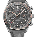 44.25 mm grey ceramic case, transparent back, 18K Senda gold bezel with a silicon nitride ring and brushed Ceragold tachymeter scale, sapphire crystal with anti-reflective treatment on both sides, meteorite dial made from a solid piece of ancient extra-terrestrial stone that has been acid etched to reveal a unique pattern on each watch, caliber 9300 self-winding movement with chronograph function, approximately 60 hours of power reserve, grey leather strap, ardillon buckle. Water resistant to 50 m (167 ft).