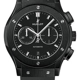 42 mm polished and satin-finished black ceramic case, satin-finished and polished black ceramic bezel with 6 h-shaped titanium screws, sapphire crystal with anti-reflective treatment, matte black dial, HUB1153 self-winding chronograph movement, approximately 42 hours of power reserve, black lined rubber strap, black-plated stainless steel deployant buckle. Water resistant to 50m (5 ATM).