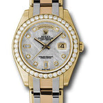 39mm yellow gold case, bezel set with 40 diamonds, meteorite dial, 8 round and 2 baguette diamond hour markers, Tridor Oyster 20mm bracelet (18K yellow, white, and pink gold)
