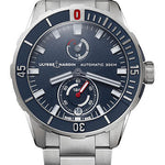 44 mm titanium case, blue dial, Caliber UN-118 self-winding movement with date, approximately 60 hours of power reserve, steel bracelet, folding buckle. Water resistant to 300 m.