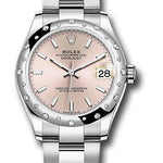 31mm white Rolesor case comprised of Oystersteel and 18K white gold, screw-down back, screw-down crown with twinlock double waterproofness system, 18K white gold domed bezel set with 24 diamonds, scratch-resistant sapphire crystal with cyclops lens over the date, pink dial, index hour markers, Rolex calibre 2236 perpetual self-winding movement with date at 3 o'clock, approximately 55 hours of power reserve, Oystersteel Oyster bracelet with flat three-piece links, concealed folding Oysterclasp buckle. Waterproof to 100 meters.