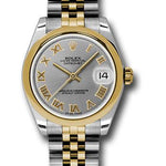 31mm stainless steel case, 18K yellow gold domed bezel, slate grey dial, Roman numerals, and stainless steel and 18K yellow gold Jubilee bracelet.