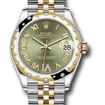 Rolex Steel and Yellow Gold Datejust 31 Watch - Domed Diamond Bezel - Olive Green Diamond Roman Six Dial - Jubilee Bracelet - 278343 ogdr6j