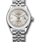 28mm 904L stainless steel case, screw-down steel back, screw-down crown with twinlock double waterproofness system, steel domed bezel, scratch-resistant sapphire crystal with cyclops lens over the date and double anti-reflective coating, silver dial, index hour markers, Rolex calibre 2236 automatic movement with center hour, minute and seconds hands, instantaneous date with rapid setting, and stop-seconds for precise time setting, stainless steel Jubilee bracelet with five-piece links, concealed folding Crownclasp buckle. Waterproof to 100 meters.