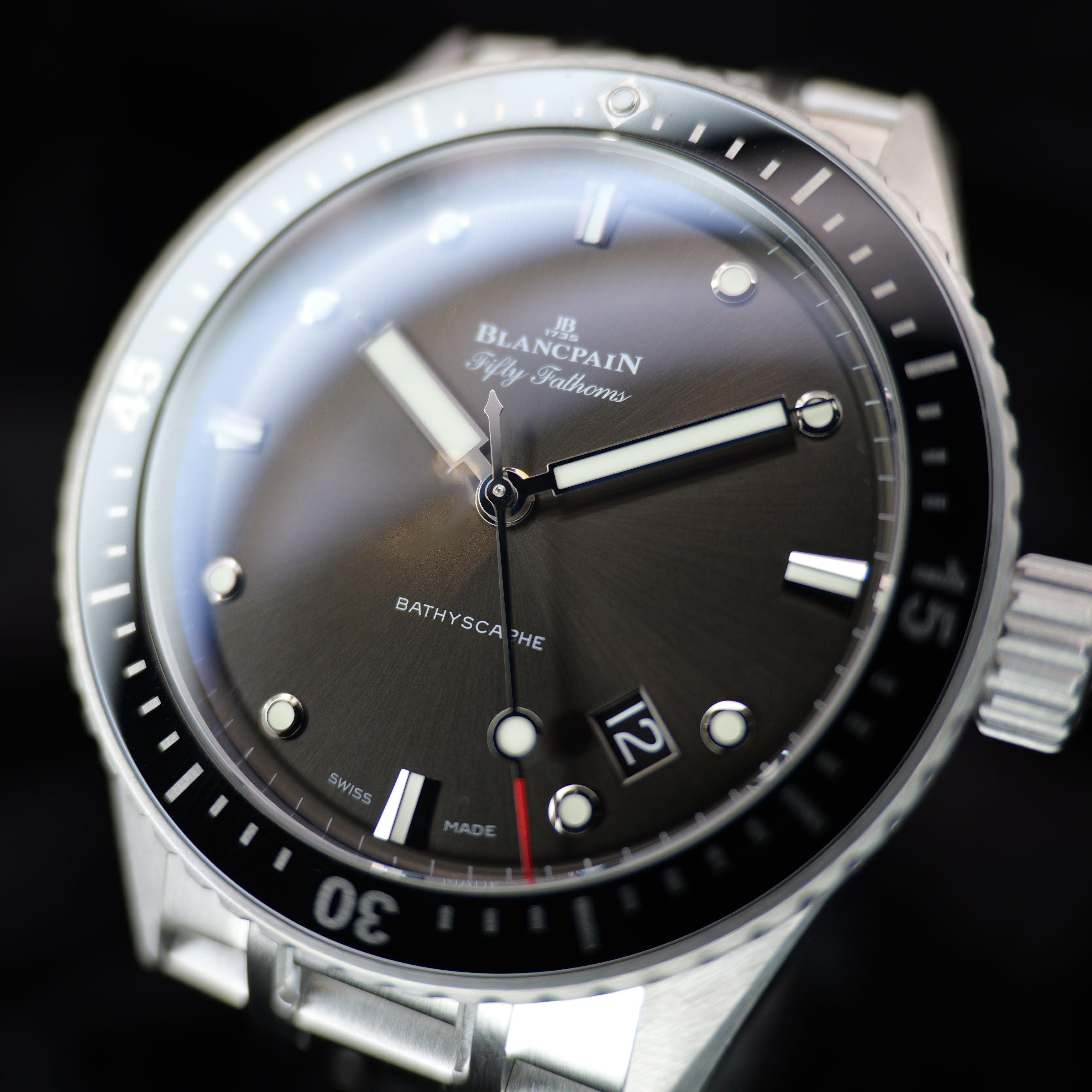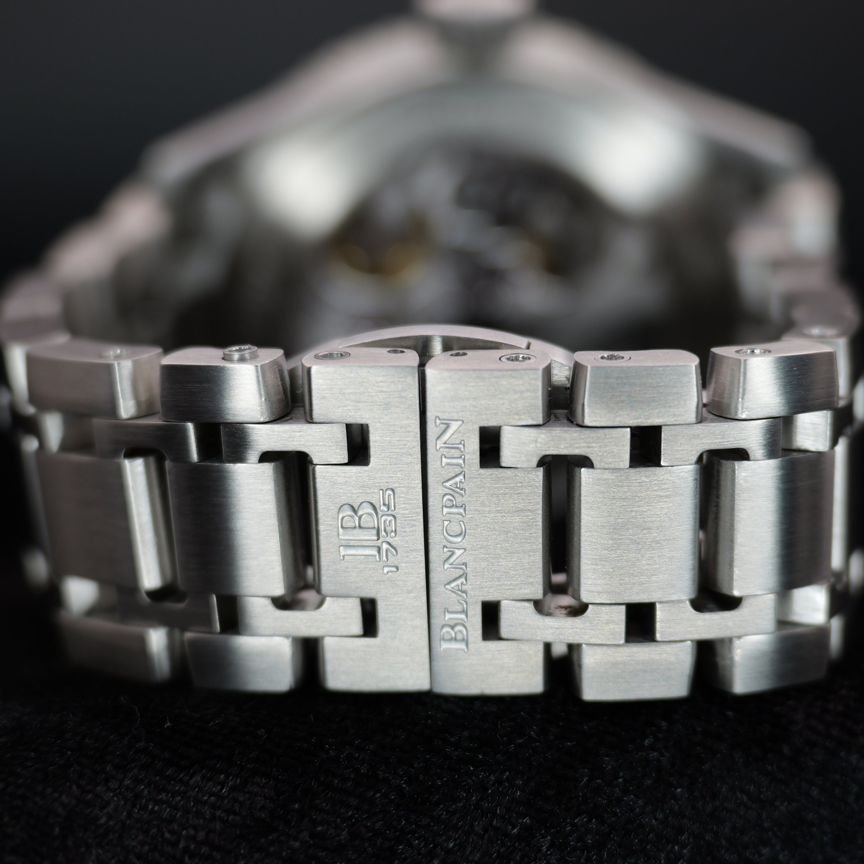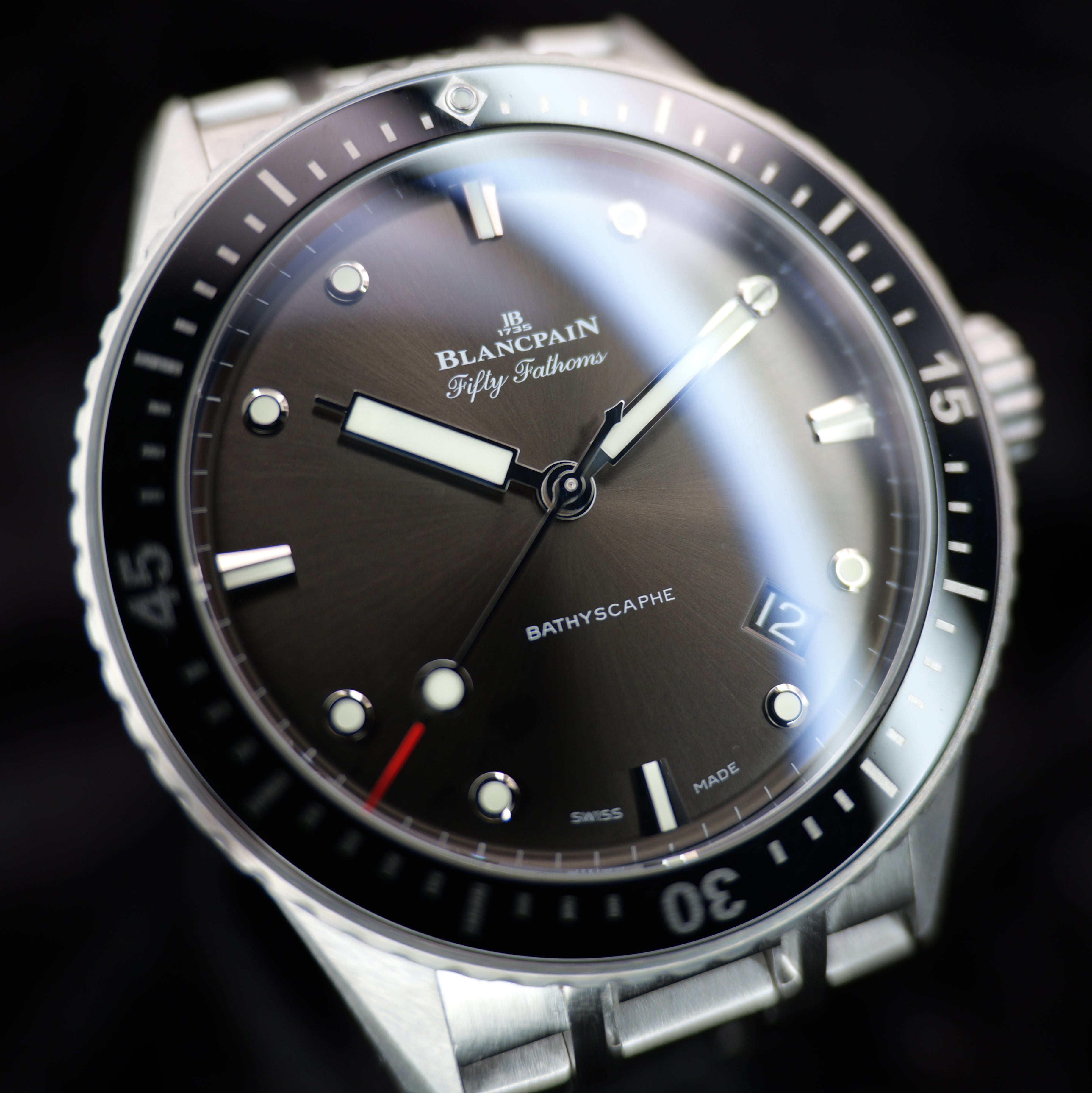 Up for sale is the Blancpain Fifty Fathoms Bathyscaphe 5000-1110-70B 43MM Stainless Steel Grey Dial with Watch Case, Manufacturer Horlogerie, Service booklet, register of connoisseurs, diver's log book, Warranty card, Microfiber cloth, and is double boxed.. Watch is dated 2023. MSRP $17,100. It was recently placed on a timegrapher and is running well. All of our watches are photographed under high intensity light with a macro lens. Any flaws will be significantly magnified. The serial numbers have been blurred for privacy. Timepiece is in exellent condition showing little to no signs of wear. Timepiece is located in Indiana.