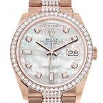 The Rolex Day-Date 36 Mother of Pearl Diamond Dial Diamond Bezel 18K Everose Gold Diamond President Watch is not merely a timepiece; it's a symbol of prestige, an amalgamation of artistry and sophistication that stands as a testament to Rolex's legacy in haute horlogerie.