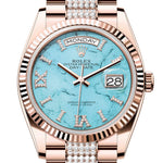 Rolex Day-Date 36 Turquoise Diamond Dial Fluted Bezel 18K Everose gold Diamond President Watch 128235