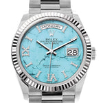 Rolex Day-Date 36 Turquoise Diamond Dial Fluted Bezel White gold President Watch 128239