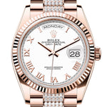 Rolex Day-Date 36 White Dial Fluted Bezel 18K Everose gold Diamond President Watch 128235
