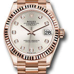 Rolex Everose Gold Datejust 31 Watch - Fluted Bezel - Silver Diamond Dial - President Bracelet - 278275 sdp