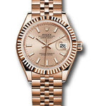 Rolex Everose Gold Lady-Datejust 28 Watch - Fluted Bezel - Pink Sundust Index Dial - Jubilee Bracelet - 279175 pij
