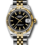 31mm stainless steel case, 18K yellow gold fluted bezel, black dial, index hour markers, and stainless steel and 18K yellow gold Jubilee bracelet.
