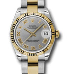 31mm stainless steel case, 18K yellow gold fluted bezel, slate grey dial, Roman numerals, and stainless steel and 18K yellow gold Oyster bracelet.
