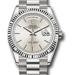 Rolex White Gold Day-Date 36 Watch - Fluted Bezel - Silver Index Dial - President Bracelet - 128239 sip