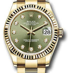 Rolex Yellow Gold Datejust 31 Watch - Fluted Bezel - Olive Green Diamond Dial - Oyster Bracelet - 278278 ogdo