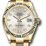 Rolex Yellow Gold Datejust 31 Watch - Fluted Bezel - Silver Diamond Dial - Oyster Bracelet - 278278 sdo