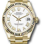Rolex Yellow Gold Datejust 31 Watch - Fluted Bezel - White Roman Dial - President Bracelet - 278278 wrp