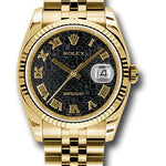 Rolex Yellow Gold Datejust 36 Watch - Fluted Bezel - Black Jubilee Roman Dial - Jubilee Bracelet - 116238 bkjrj