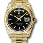Rolex Yellow Gold Day-Date 36 Watch - Fluted Bezel - Black Index Dial - President Bracelet - 118238 bksp