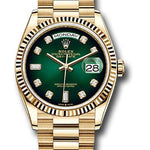 Rolex Yellow Gold Day-Date 36 Watch - Fluted Bezel - Green Ombre´ Diamond Dial - President Bracelet - 128238 godp
