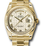 Rolex Yellow Gold Day-Date 36 Watch - Fluted Bezel - Ivory Pyramid Roman Dial - President Bracelet - 118238 iprp