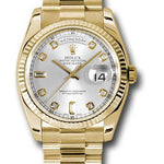 Rolex Yellow Gold Day-Date 36 Watch - Fluted Bezel - Silver Diamond Dial - President Bracelet - 118238 sdp