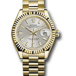 Rolex Yellow Gold Lady-Datejust 28 Watch - Fluted Bezel - Silver Index Dial - President Bracelet - 279178 sip