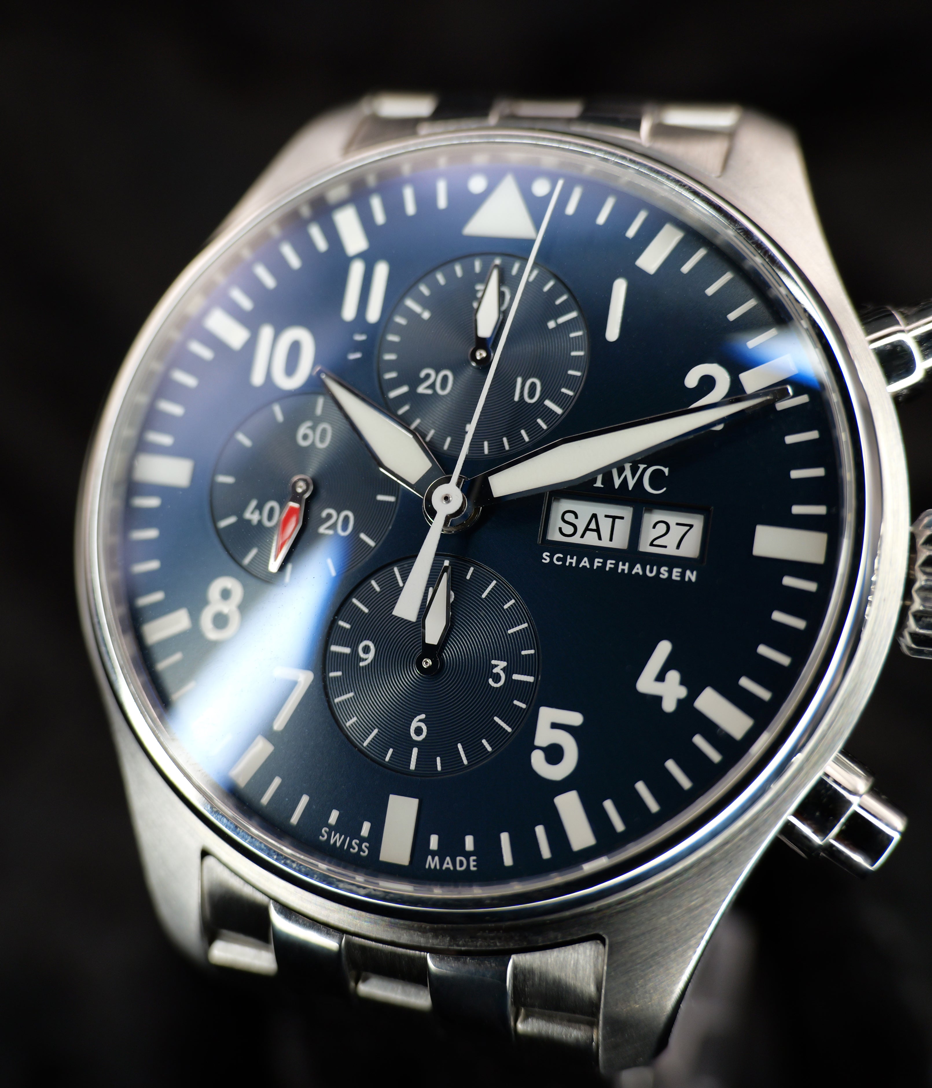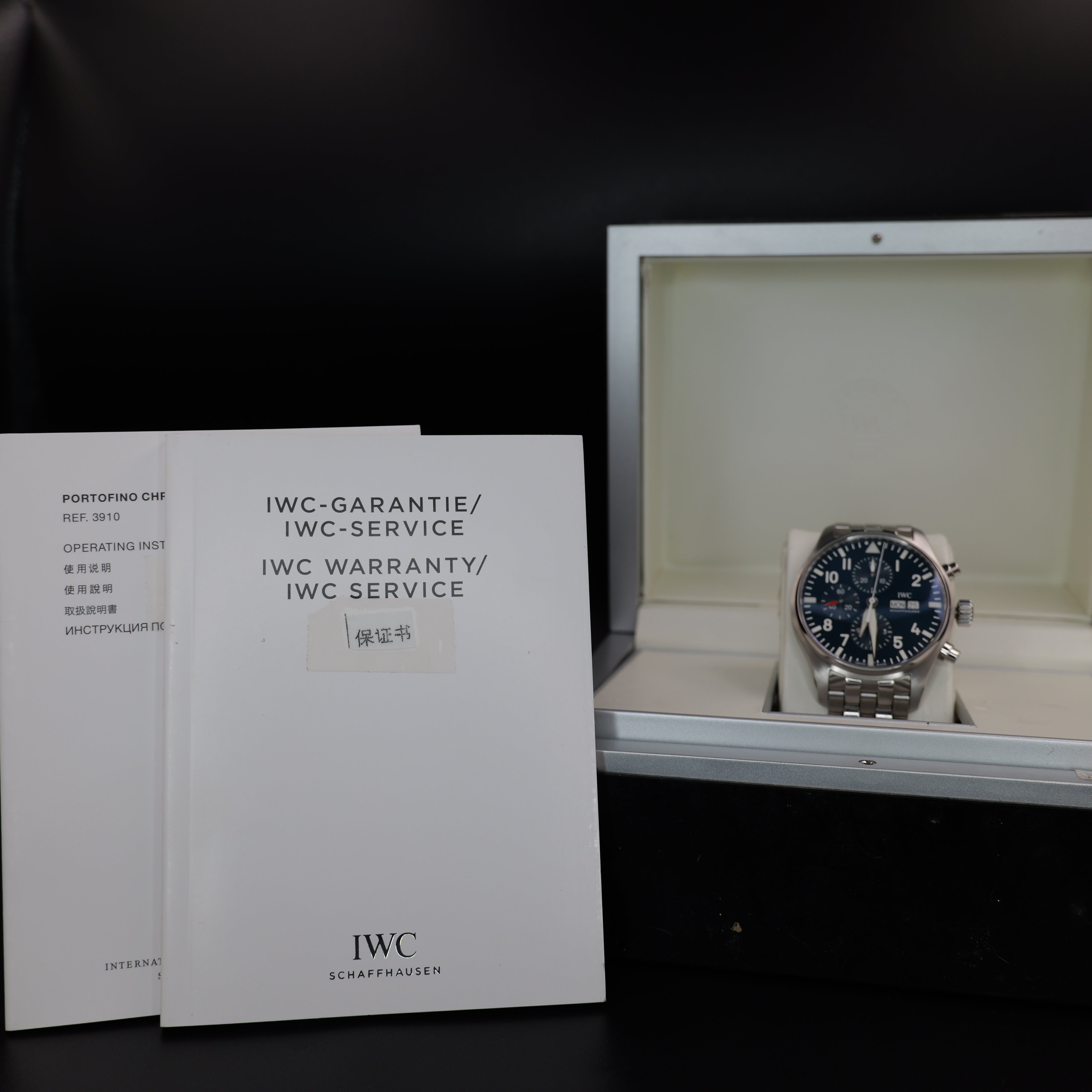 Up for sale is the IWC Pilot’s Watch Chronograph Edition “Le Petit Prince” IW377717 43MM Steel Blue Dial with Operating Instructions, Warranty Booklet, Warranty Card, and is boxed. Watch is dated 2017. MSRP $6850. It was recently placed on a timegrapher and is running well. All of our watches are photographed under high intensity light with a macro lens. Any flaws will be significantly magnified. The serial numbers have been blurred for privacy. Timepiece is in excellent condition showing little to no signs of wear. Timepiece is located in Indiana.