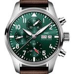 IWC Pilot's Watch Chronograph 41 - Stainless Steel Case - Green Dial - Brown Calfskin Strap - IW388103