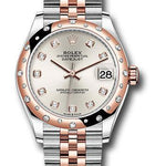 31mm Everose Rolesor case comprised of Oystersteel and 18K Everose gold, screw-down back, screw-down crown with twinlock double waterproofness system, 18K Everose gold domed bezel set with 24 diamonds, scratch-resistant sapphire crystal with cyclops lens over the date, silver dial, diamond hour markers, Rolex calibre 2236 perpetual self-winding movement with date at 3 o'clock, approximately 55 hours of power reserve, Everose Rolesor Jubilee bracelet with semi-circular three-piece links, concealed folding Crownclasp buckle. Waterproof to 100 meters. Baselworld 2019 release.