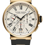 43mm 18K rose gold (5N) case, screw-down security crown crown, sapphire crystal, eggshell dial, Caliber UN-153 Self-winding movement with 30-minutes, 12-hours and small seconds registers, annual calendar backward/forward setting with months counter at 9 o'clock, date, rubber strap with titanium element, deployant buckle. Water resistant to 100m.