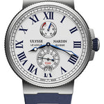 45mm stainless steel case, screw-down security crown crown, sapphire crystal, white lacquered dial, Caliber UN-118 Self-winding movement with 60 hours power reserve indicator, oversized seconds-hand, date, rubber strap with titanium element, deployant buckle. Water resistant to 200m.
