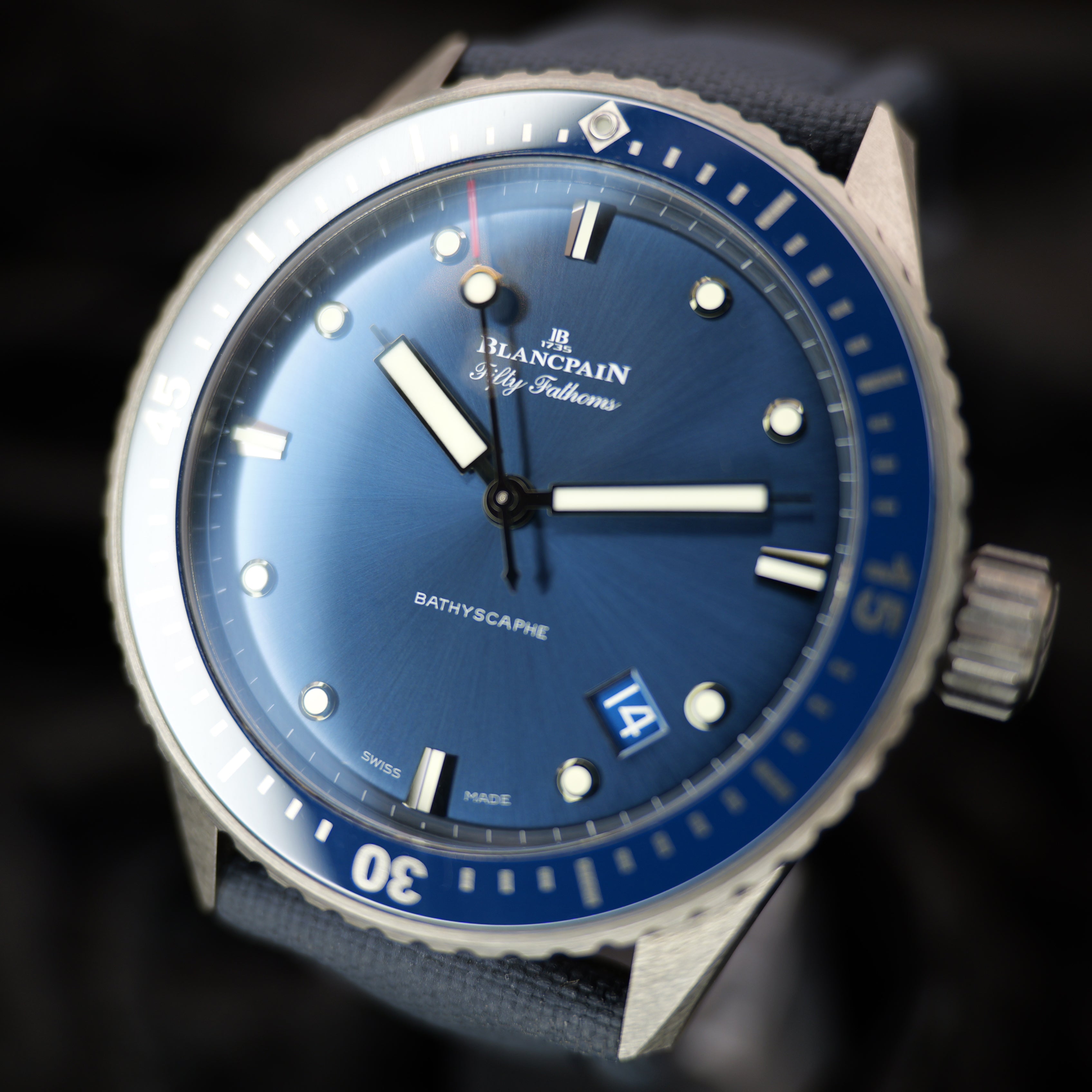 Blancpain Fifty Fathoms Bathyscaphe 5000-0240-O52A 43.6MM Blue Dial Full Set WARRANTY