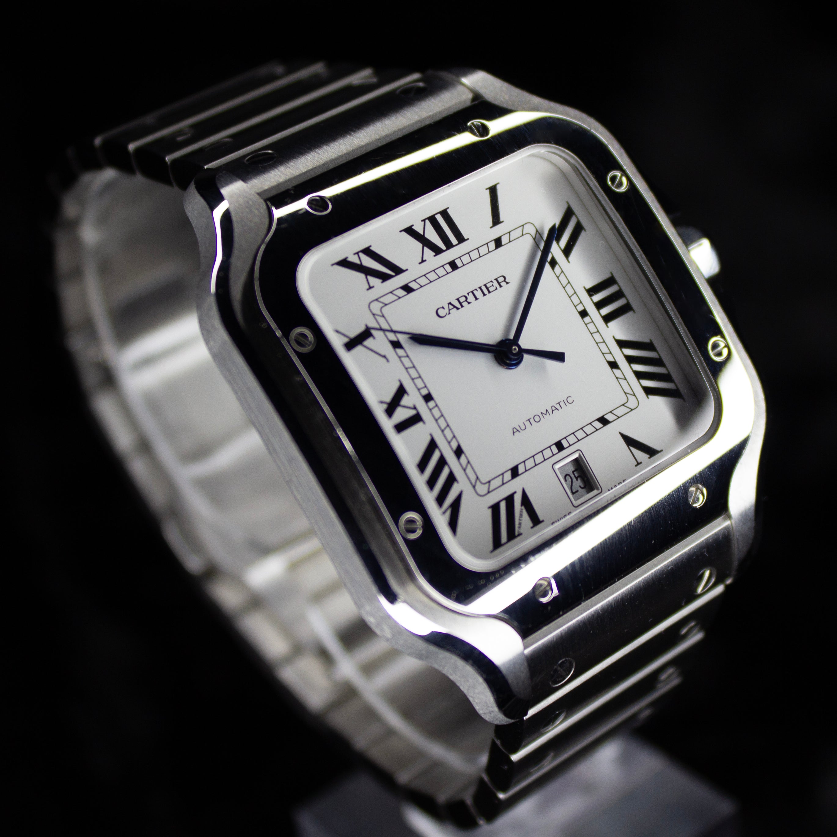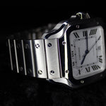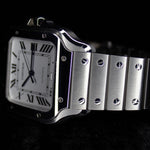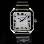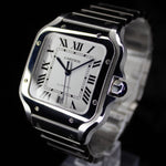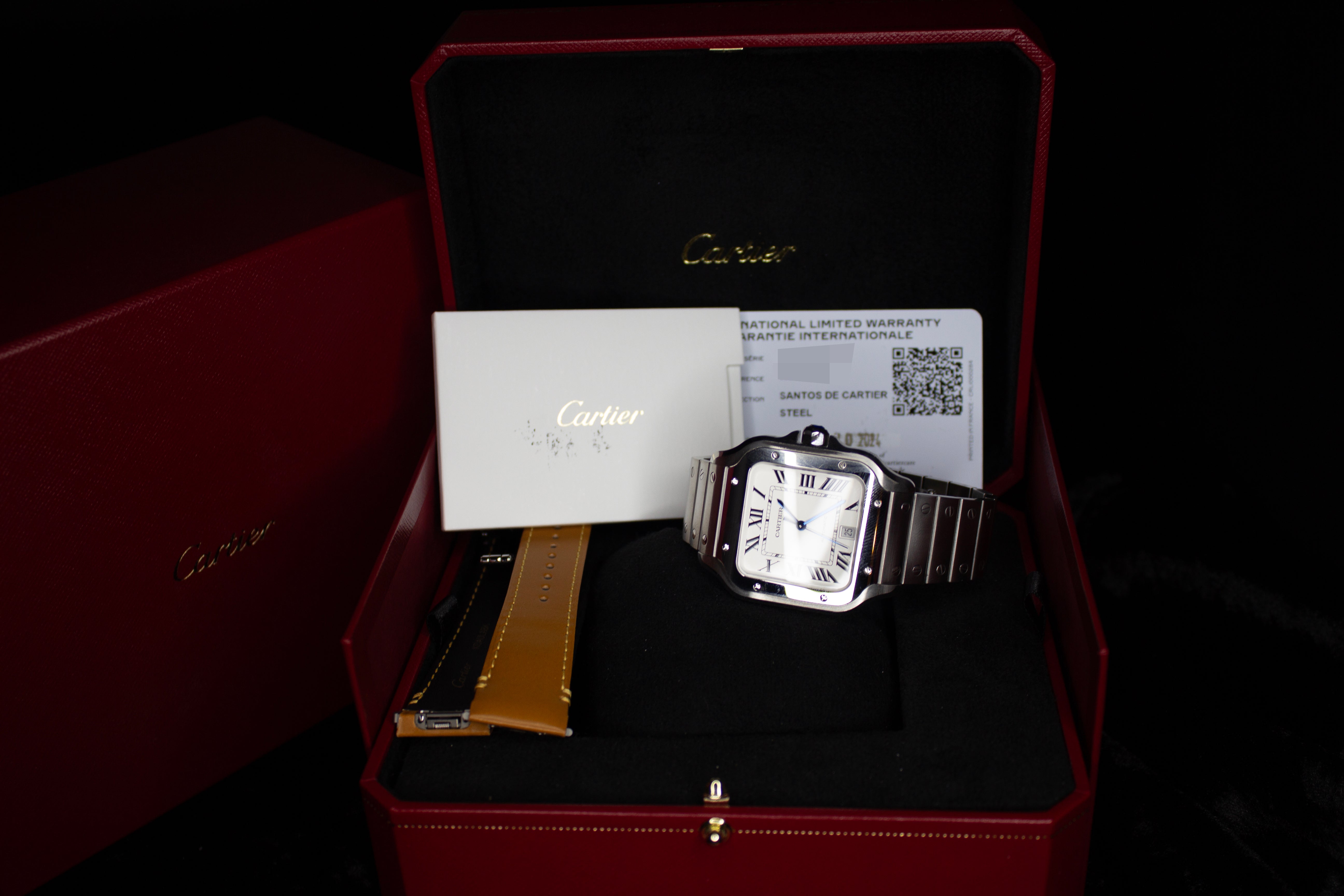 Up for sale is the Cartier Santos de Cartier Steel WSSA0018 40MMx48MM Steel Silver Dial with Instructions booklet, cartier care booklet, warranty card, extra strap, and is double boxed. Watch is fitted to 6.5in. Watch is dated 2024. Watch warranty is good through 2032. MSRP $8,650. It was recently placed on a timegrapher and is running well. All of our watches are photographed under high intensity light with a macro lens. Any flaws will be significantly magnified. The serial numbers have been blurred for privacy. Timepiece is in excellent condition showing little to no signs of wear. Timepiece is located in Indiana.