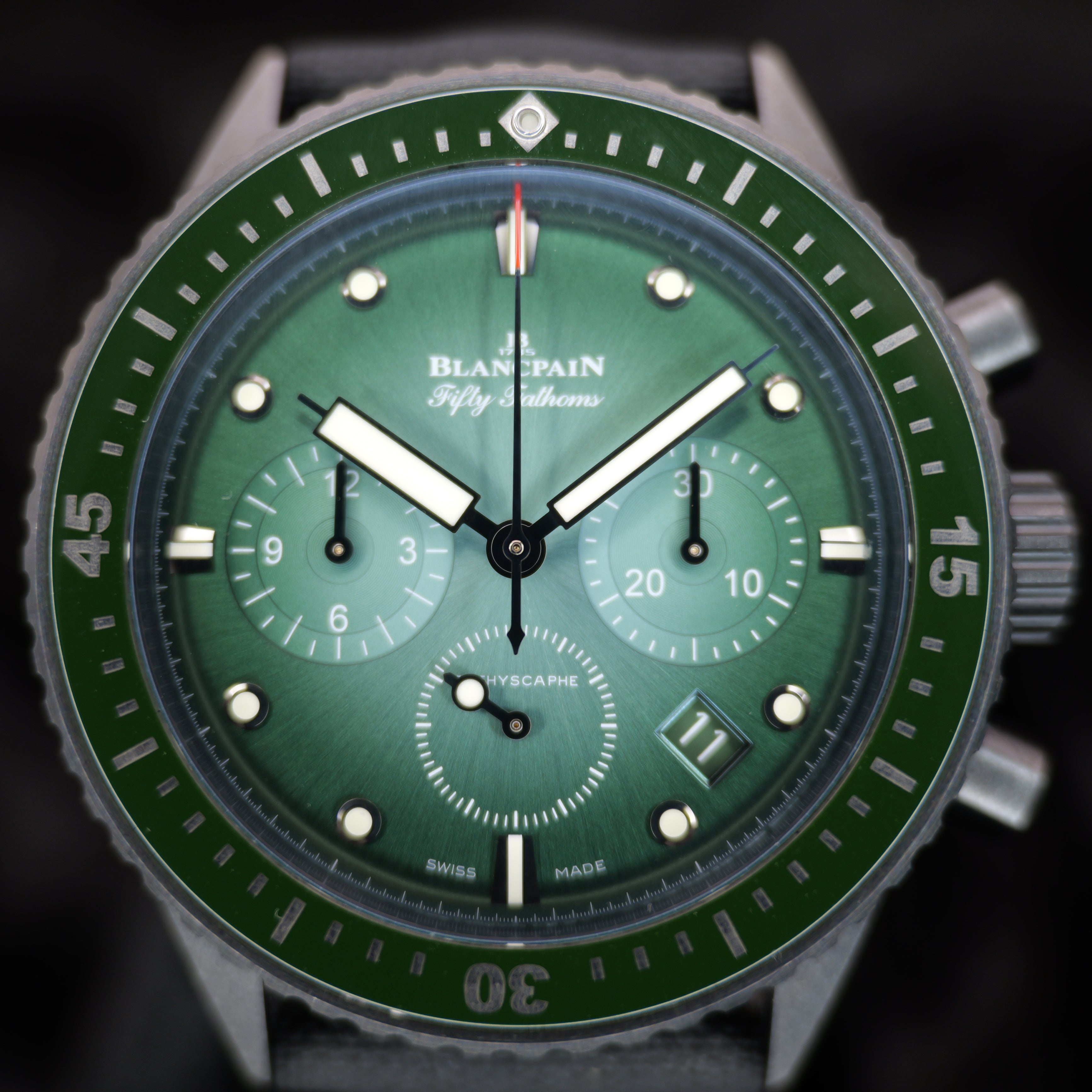 Fifty Fathoms Bathyscaphe Chronographe Flyback 5200-0153-B52A 43MM Green Dial Full Set WARRANTY