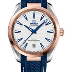 Omega Aqua Terra 150M Co-Axial Master Chronometer Watch - 38 mm Steel And Sedna Gold Case - Silvery Dial - Blue Structured Rubber Strap - 220.22.38.20.02.001