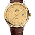 39.5 mm stainless steel and 18K yellow gold case, scratch-resistant sapphire crystal anti-reflective treatment inside, champagne dial with a silk-like pattern and an opaline finish, Caliber Omega 2500 self winding movement with rhodium-plated finish, chronometer, date, approximately 48 hours of power reserve, brown leather strap. Water resistant to 3 bar (30 metres / 100 feet).