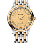 27.4 mm stainless steel and 18K yellow gold case, scratch-resistant sapphire crystal, champagne dial with a silk-like pattern and an opaline finish, Omega 1376 quartz movement with rhodium-plated finish, stainless steel and yellow gold bracelet. Water resistant to 3 bar (30 metres / 100 feet).