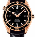 Omega Seamaster Planet Ocean Big Size Watch - 45.5 mm Red Gold Case - Unidirectional Bezel - Black Dial - Black Leather Strap - 222.63.46.20.01.001