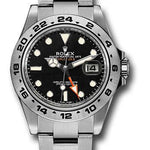 42mm stainless steel case, 24 hour bezel and hand, independent 12 hour hand, black dial, self-winding Rolex calibre 3187 movement, and Oysterlock bracelet with Easylink 5mm comfort extension link.