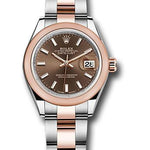 28mm Everose Rolesor case comprised of a 904L steel monobloc middle case, screw-down steel back, 18K Everose gold screw-down crown with twinlock double waterproofness system, 18K Everose gold domed bezel, scratch-resistant sapphire crystal with cyclops lens over the date and double anti-reflective coating, chocolate dial, index hour markers, Rolex calibre 2236 automatic movement with center hour, minute and seconds hands, instantaneous date with rapid setting, and stop-seconds for precise time setting, Everose Rolesor Oyster bracelet comprised of a combination of 904L steel and 18K Everose gold in flat three-piece links, folding Oysterclasp buckle with Easylink 5mm comfort extension link. Waterproof to 100 meters.