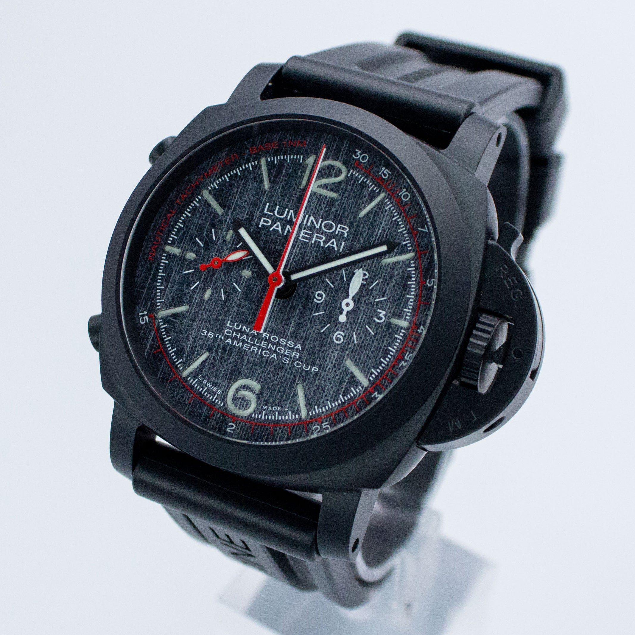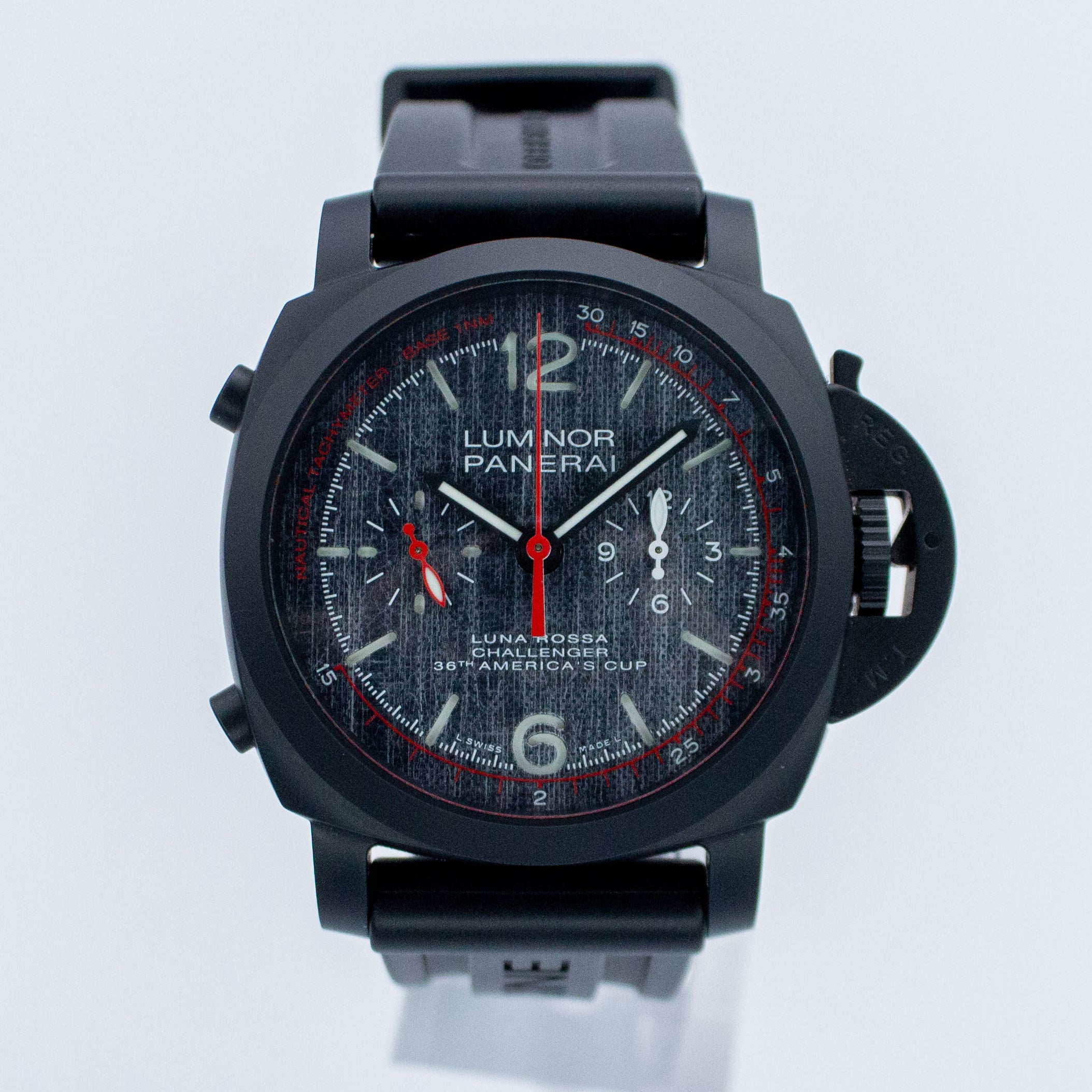 Panerai Luminor 1950 Chronograph Flyback "Luna Rossa" PAM01037 44MM Ceramic Black Dial Full Set WARRANTY